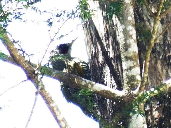 図鑑などで調べてみたところ「アオゲラ」というキツツキの仲間らしいことが分かりました。