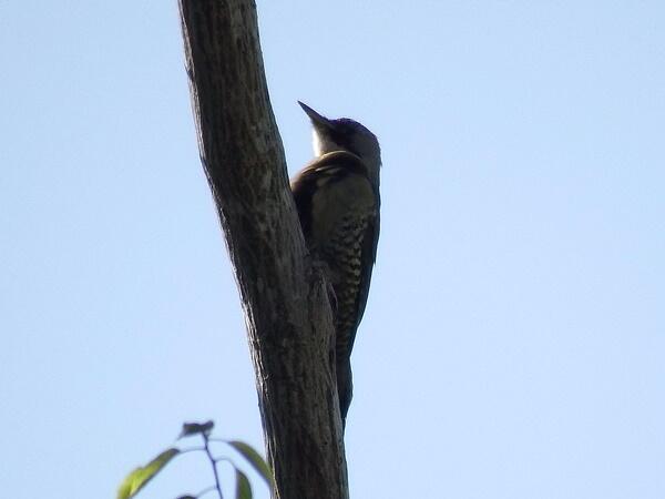 何の音だろうと音の方向へ目を凝らしてみると 鳥が木をたたいていました。