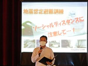 今年の避難訓練は、新型コロナウイルスへの厳戒態勢の中、