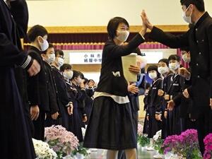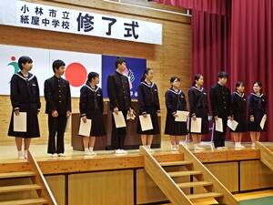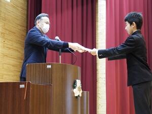 式では、1年生 坂上きらさん、2年生 栓山李虎くんが代表で校長先生から修了証を受け取りました。その堂々とした態度や式中の1・2年生全員のきびきびとした所作や態度に、1年間の成長を感じる式典となりました。