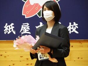 養護教諭の 阪中(矢野)葵 先生は、新規採用から4年間のお勤めでしたが、今回の定期異動で川南町立東小学校へ転勤されることになりました。