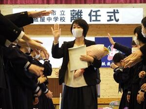 英語科の 田口絹代 先生は、英語科の先生として5年間、本校にお勤めになりましたが、今回の定期異動でお隣の小林市立野尻中学校へ転勤されることになりました。