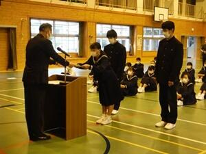 12月24日(金)冬休み前の全校集会が行われました。校長先生が4月から12月までの学校行事や様々な出来事を紹介しながら、令和3年の子供たちの成長を思い出の写真と共に振り返りました。