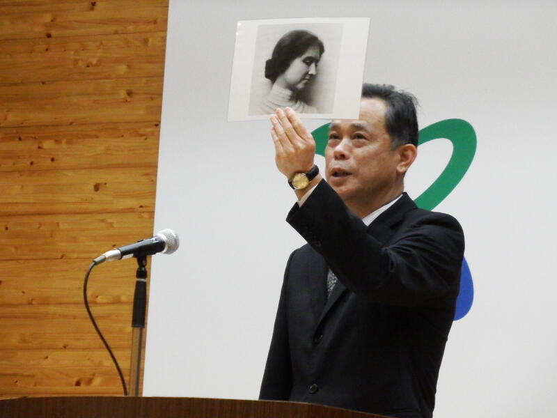 校長先生は、ヘレン・ケラーとサリバン先生の逸話から、「どんな苦難が待ち受けていようとも『努力』することの大切さ」を話されました。