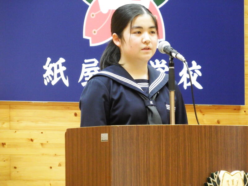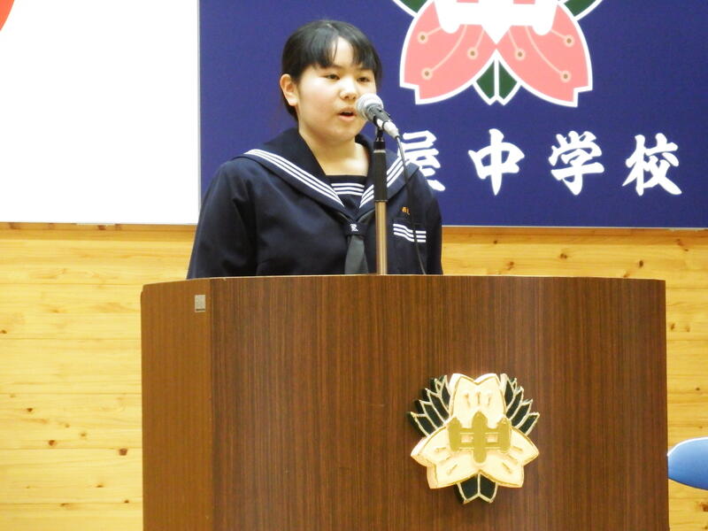 2年生になった西田 琴さん、3年生の有木舞彩さんの新年度の抱負の発表では、新しい学年に進級した決意とともにこれから取り組む課題を発表しました。