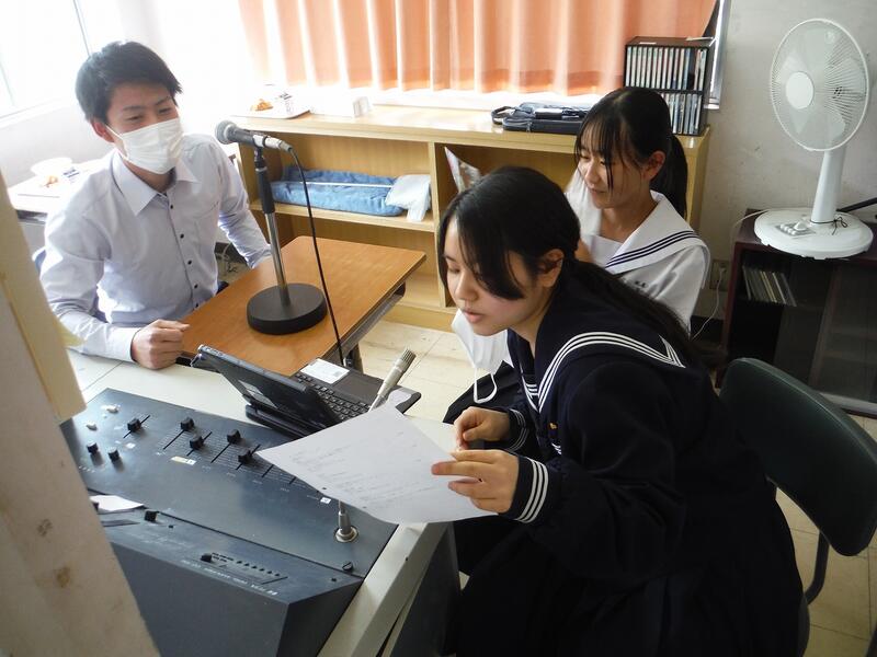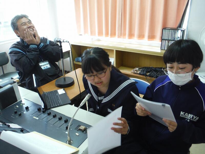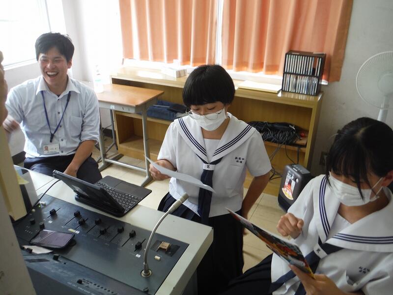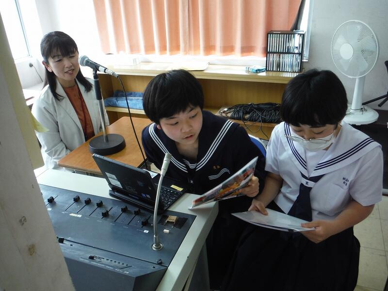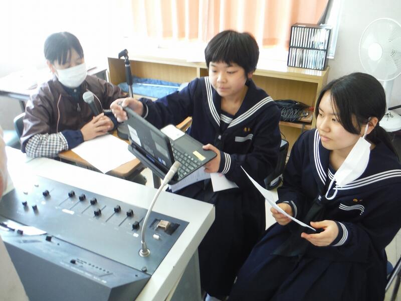 国語科の壱岐先生のアイデアで、授業と連携したお昼のDJ「紙屋ランチパック」の放送を3年生が担当しています。