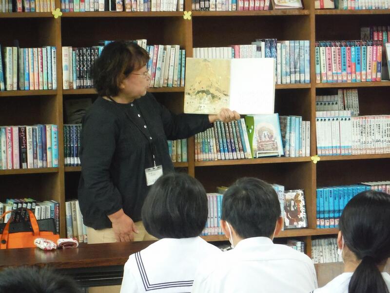 絵本の読み聞かせは、お話を聞く楽しさはもちろんのこと、描かれている絵の美しさや迫力など、視覚に訴える刺激があり、感性が磨かれる素敵な時間です。生徒も先生も、みんな物語の世界にひたっていました。