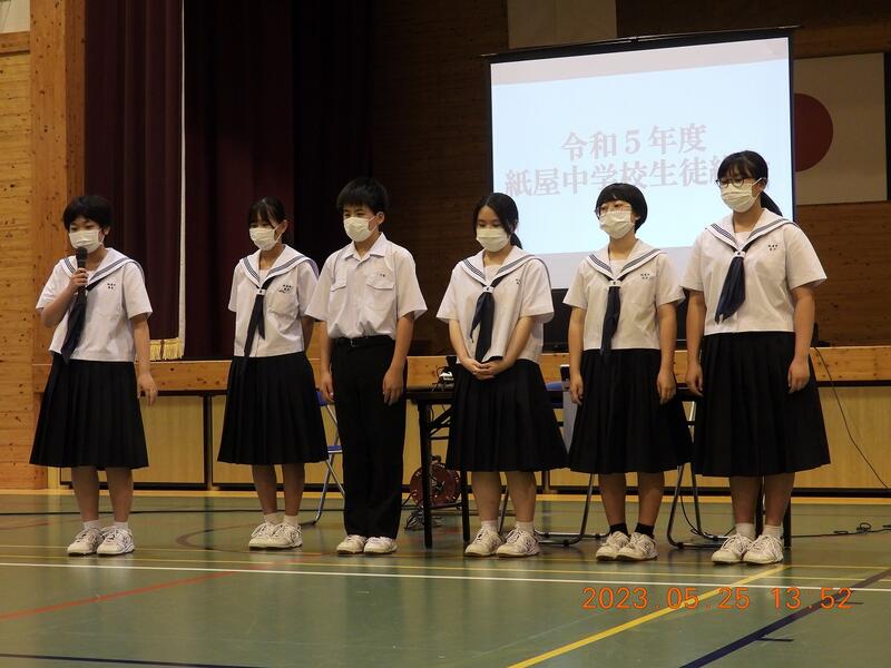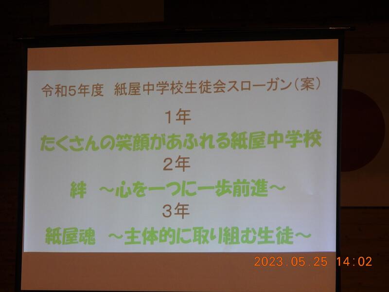 みんなで決めた紙屋中生徒会スローガン「紙屋魂~主体的に~取り組む生徒」のもと、たくさんの笑顔があふれ、絆を大切にしながら一歩前進できる学校づくりをしてほしいですね。