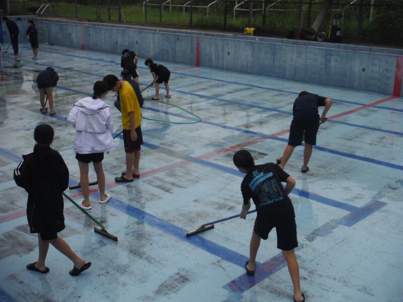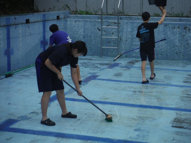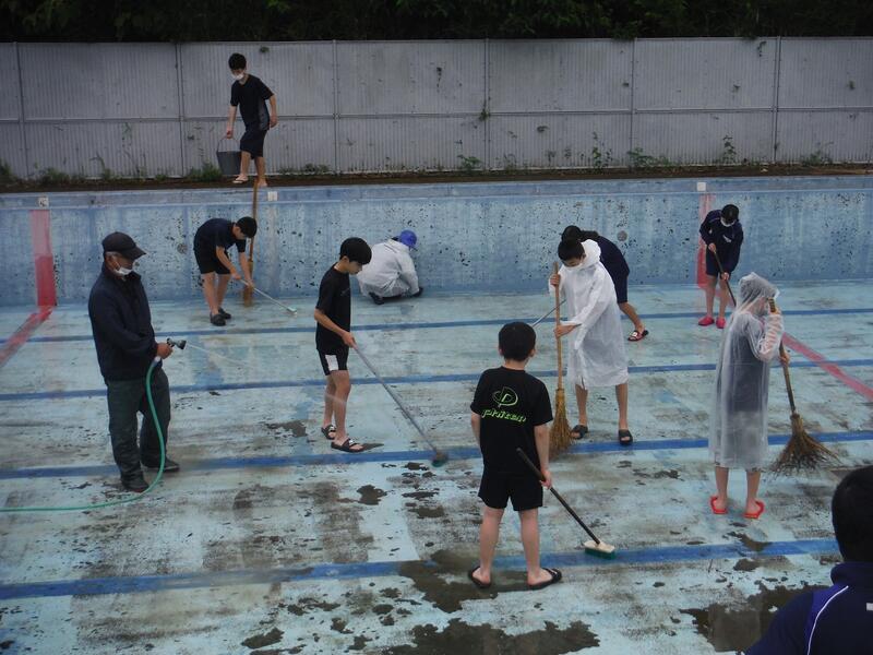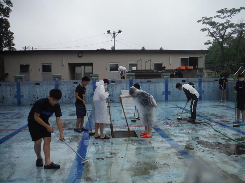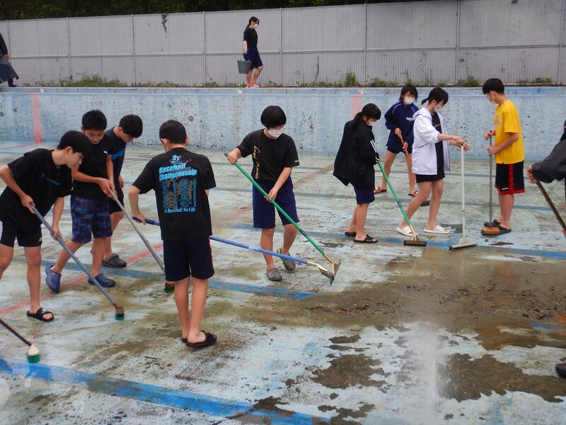 6月1日(木)に、プールの授業に備えて、全校生徒でプール清掃を行いました。
