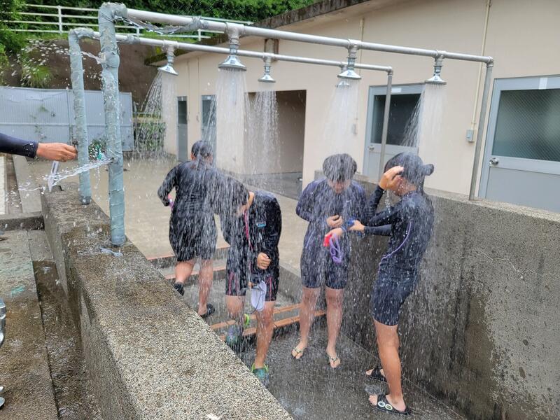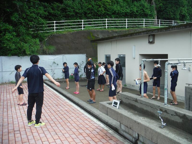 生徒たちはやや冷たい水に恐る恐るといった感じで中に入っていきましたが、すぐに水温に慣れ、水を掛け合ったり大声で叫んだりして、楽しそうに水と戯れていました。