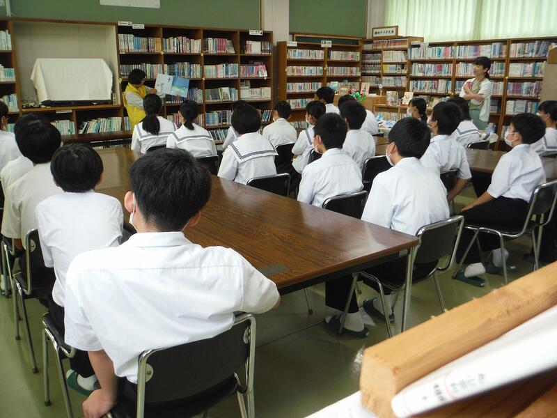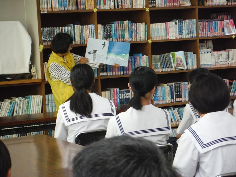 生徒たちは、後ろから身を乗り出しながら絵本を見つめ、お話に聞き入っていました。