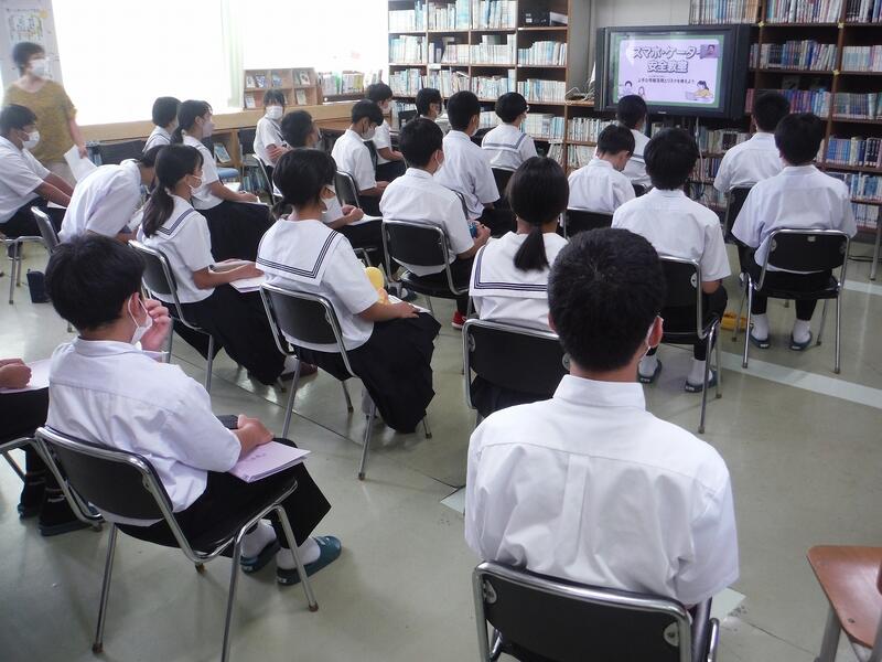 7月20日(木)の4校時、NTTドコモ九州の方を講師として、オンラインでスマホ・ケータイ安全教室が開催されました。