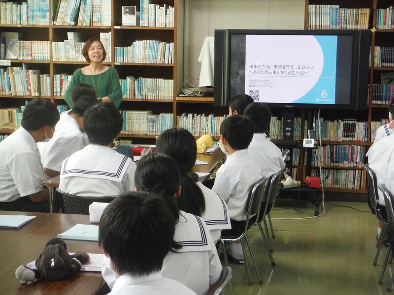 7月21日(金)の3、4校時に、シンク・オブ・アザーズ代表の難波 裕扶子様をお招きして、SDGsに関する学習会を実施しました。