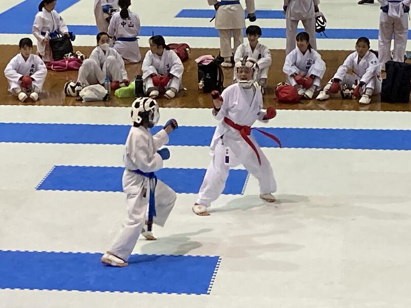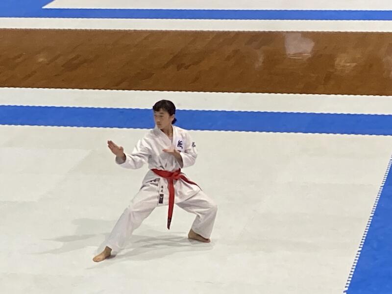 紙屋中からは、1年生の長友 春佳さんが個人形と個人組手に出場しました。小学生の頃より指導者であるお父さんから指導を受け、これまで練習に励んできました。その練習の成果を、本番では発揮することができたようです。学校だけではなかなか見ることのできない勇ましい姿を見ることができ、職員もとても喜んでいました。