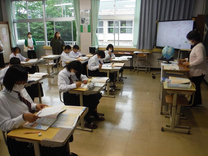 今回は学級担任による授業で、1年生は社会科、2年生は体育科、3年生は国語科の授業を見ていただきました。