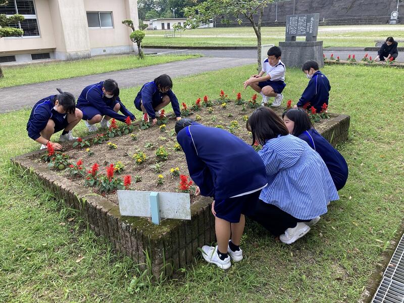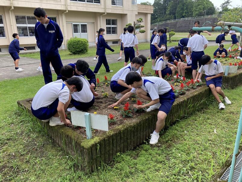 5月8日(水)の花壇活動の時間では、生徒たちが積極的に雑草を抜く姿が見られました。