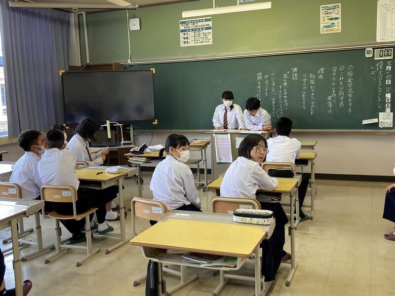今回は全校討論会での議題と学校への要望を深める時間でしたが、回を重ねるごとに学級委員長と副委員長の進行もスムーズになり、学級からは様々な意見が出るようになってきました。