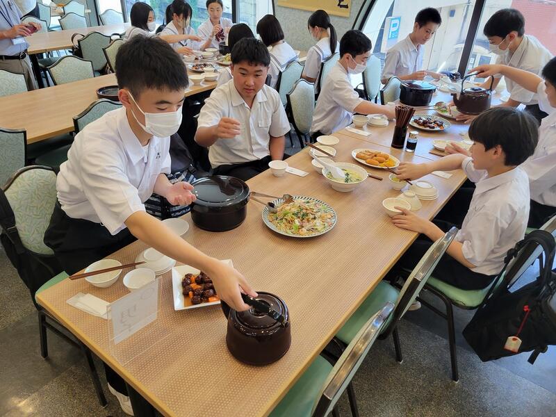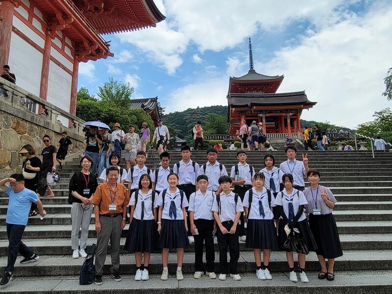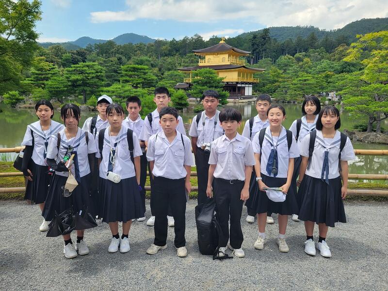 2日目の金閣寺では、普段あまり話をしない人と班を組み、決めた課題をクリアするという班活動を実施しました。「金閣寺にはどの国からの観光客が多いのか?」という課題を立てた班は、外国の方に英語で出身地をたずねるという難しいリサーチ方法を選択したため、恐る恐る英語で話しかけなければならず、それでも勇気をもって声をかけ、最後には課題を達成し笑顔で一緒に写真に納まっていました。どの班のメンバーも協力し合って課題をクリアし、無事にバスに戻ってきました。