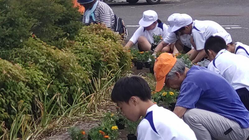 7月3日(水)、1年生が紙屋一徳会や社会福祉協議会紙屋支部の方々と一緒に、植栽活動を行いました。