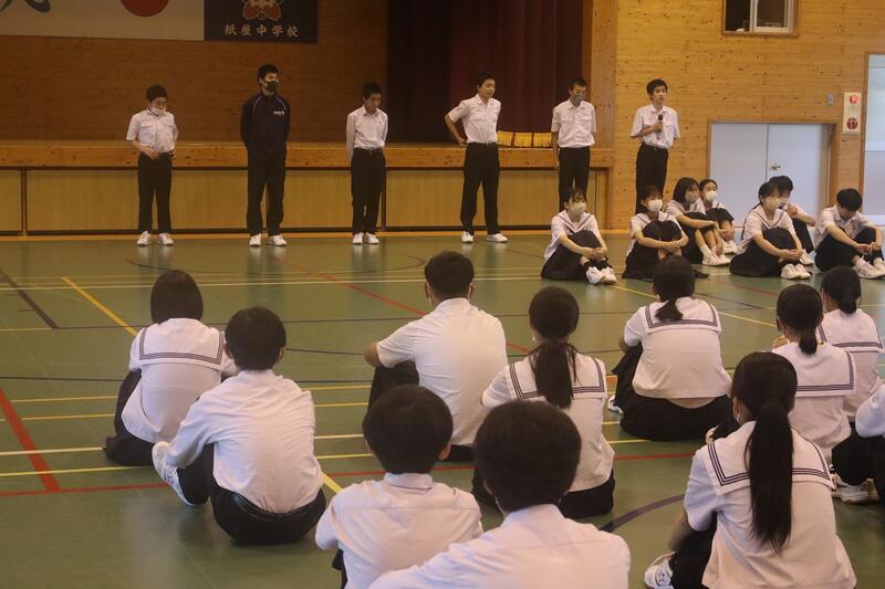 バドミントン部、陸上クラブ、空手競技、男子バレーボールクラブの選手たちから抱負が述べられ、生徒を代表して生徒会長である3年生の栓山 梓真さんから熱いメッセージが贈られました。