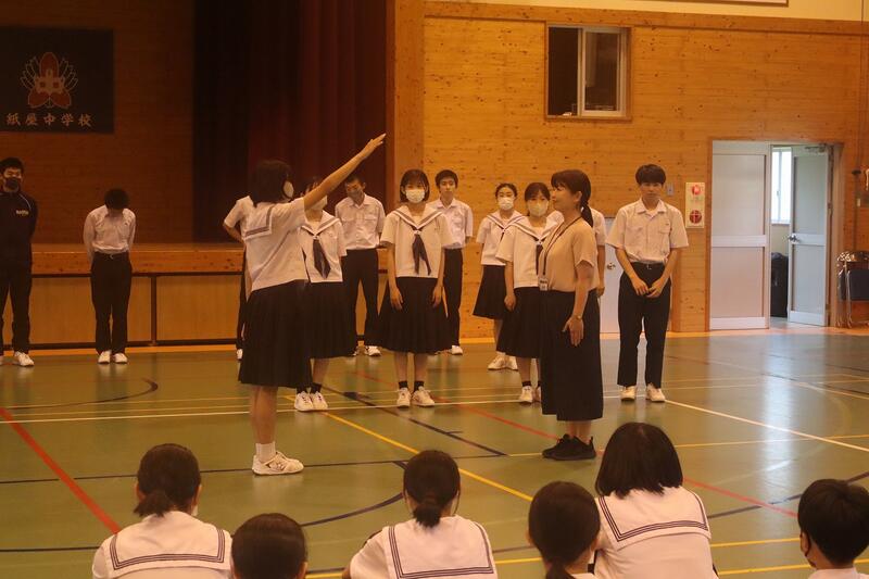6月25日(火)の紙屋タイムの時間に、県中学校総合体育大会と男子バレーボールクラブの大会に向けて、選手激励会を実施しました。