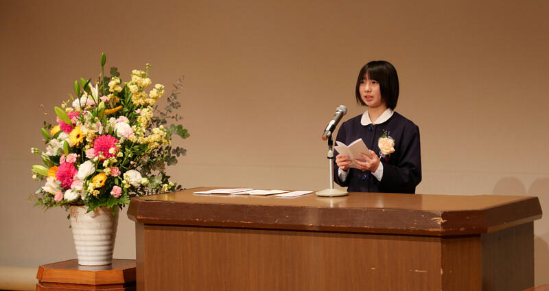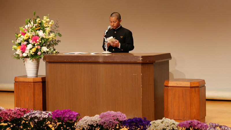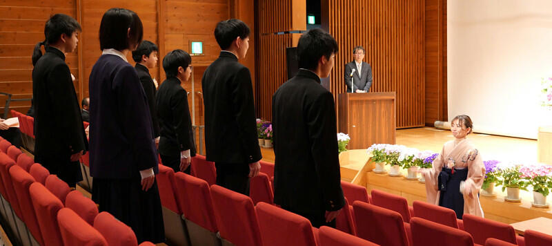 英検では、合格した柏野さん、濱村さん、山本さんが全体表彰されました。おめでとうございます。