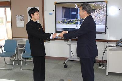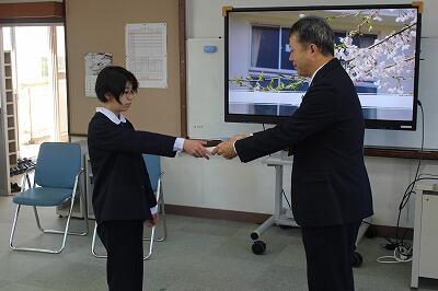 修了証書は、各クラスの代表が校長先生から受け取りました。