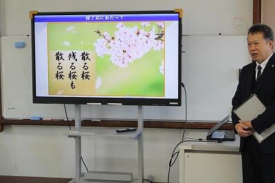 校長先生からは「散る桜 残る桜も 散る桜」という言葉をもとにお話がありました。