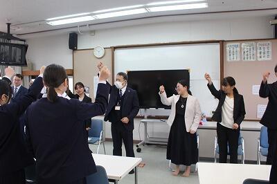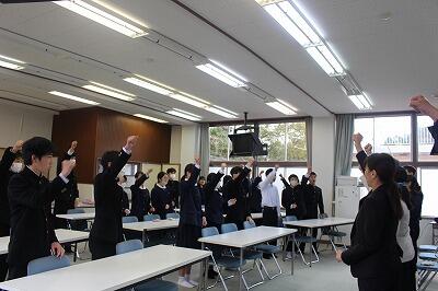 また、末原校長先生からは、「頑張るぞー!須木!」の手話ポーズを教えていただき、「4月から苦しいことがあったときは、そっとこのポーズをして乗り切ろう。みんな心は一つだ。」と元気の出るメッセージをいただきました。