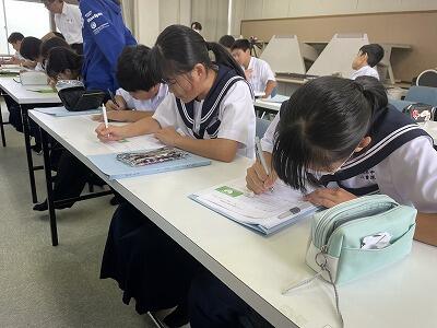 2年生は技術の授業。真剣にワークのまとめをしていました。