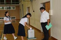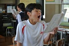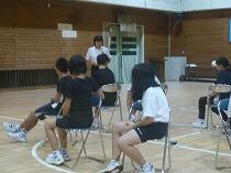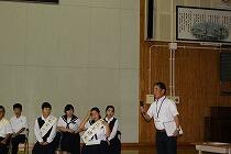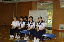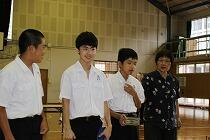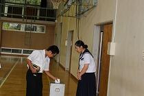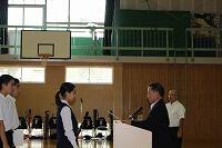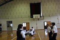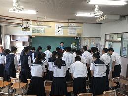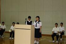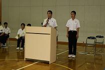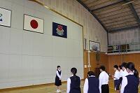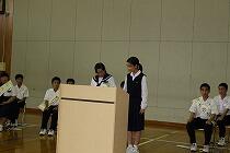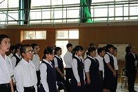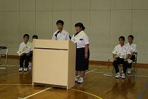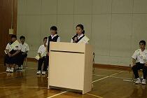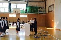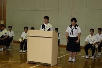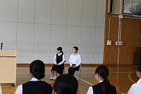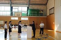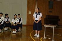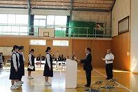 帰りの会後、体育館で激励式を行いました。出場選手一人ずつ、抱負を述べてくれました。また、生徒を代表して黒木美由さんが、「精一杯力を発揮してください。」と、激励の言葉を送ってくれました。