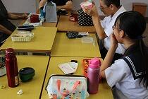 給食の最後に生徒を代表して3年生の片地奏音さんが「私たちが元気に楽しく生活