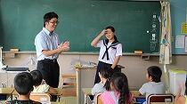 蒸し暑い時間帯でしたが、子どもたちに熱心に指導される姿が印象的でした。