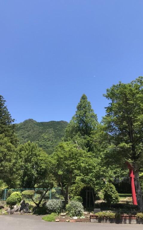 中庭から校内の木々や遠くの山がとても美しく見えます。