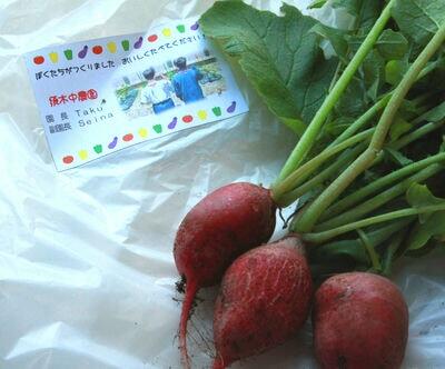「入っていいですよ」と言うと、「これ、食べてください」と、須木中農園で栽培していたラディッシュをいただきました。