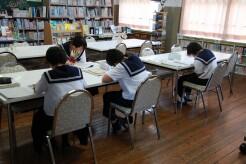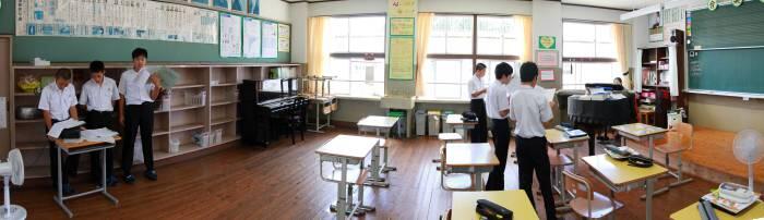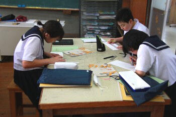 1校時の途中ですが、1年生は貼り付けを始めた生徒もいます。