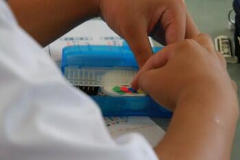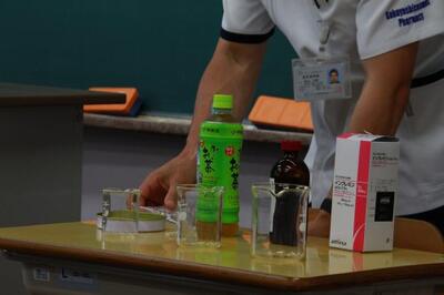薬を水やお茶でのむとどうなるか等について、簡単な実験もしていただきました。