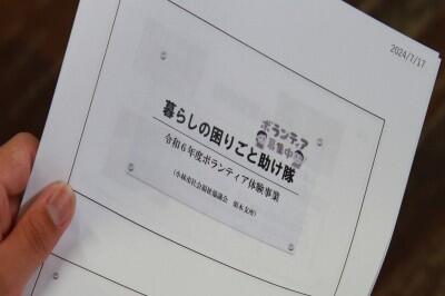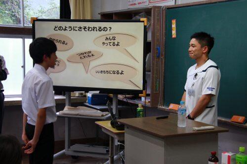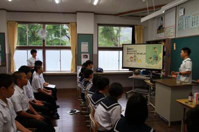 6時間目に、8月2日の暮らしの困りごと助け隊(地域の方に対する中学生が行うボランティア活動)に向けての講習が行われました。
