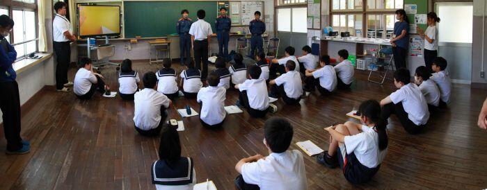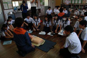 今日の5時間目は、西諸広域行政事務組合消防本部 中央消防署 須木分遣所から署員の皆様3名に来ていただき、救急救命講習を行っていただきました。