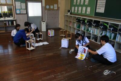 8月10日の花火大会に向けて灯篭づくりをしました。