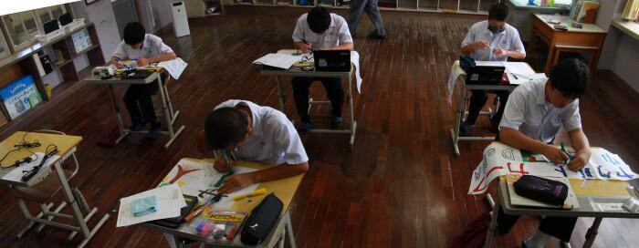 中学校の先生方も、それぞれ真剣に授業計画を考えています。