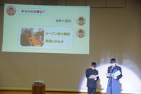小牧さんは、落語の「時そば」を登場人物の表現を工夫しながら、山本さんは好きなアーティストのPerfumeについての熱い思いを、それぞれ英語で発表しました。
