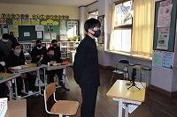 コロナ禍での卒業式は3回目となりますが、今年度も規模を縮小し、来賓の方々も教育委員会から1名とPTA会長のみに限定して式が執り行われました。歌も2曲に絞り、国歌や校歌を歌唱付きのCDを流す形を取りました。様々な制限がありましたが、このように式を開催できることの喜びをかみしめながら、去りゆく卒業生たちの姿を見送りました。