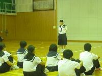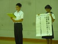 7月の生徒集会が行われました。「あいさつ練習」に続いて、専門委員会からの