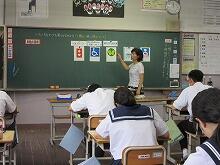 5、6校時に、3年生は福祉体験学習③を行いました。小林市社会福祉協議会の方々の指導のもと、福祉の意義や