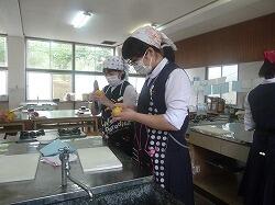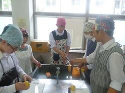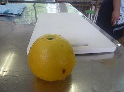 3年生の家庭科で、夏みかんの皮むきを行っていました。