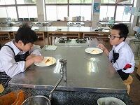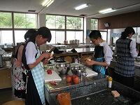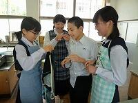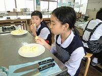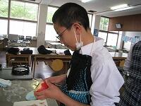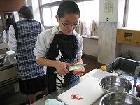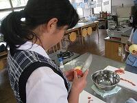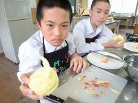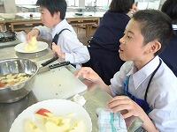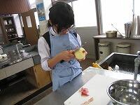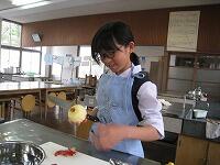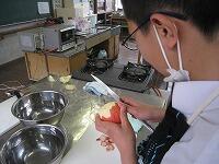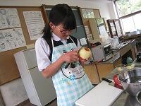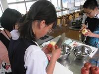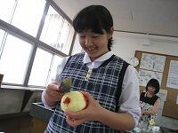 家庭科の授業は「家庭生活と自立」という題材で授業が進んでいます。レディネスとして1,2年生では、「リンゴの皮むき」をされていました。思った以上に、上手にできていたようです。
