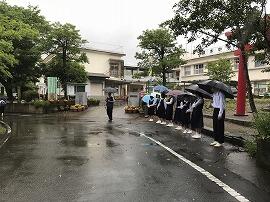 やや休み疲れの様子はありましたが、それでも小雨の中、正門前ではあいさつ運動。