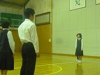 整列後、全員で「あいさつ練習」。その後、朝のあいさつ。