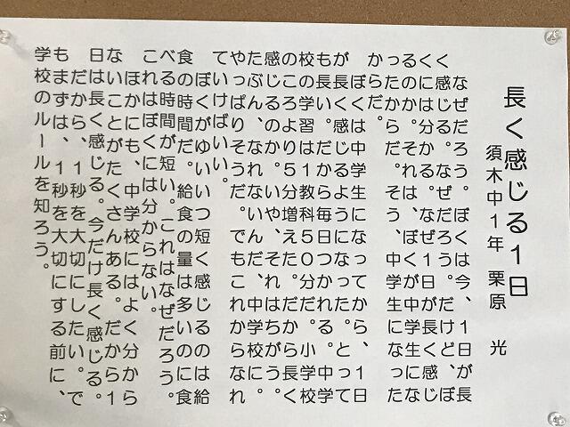 中学校へ入学して感じたことを子どもらしくほのぼのとした表現で、詩風に作文として書き上げています。ぜひ、読んでほしいと思います。